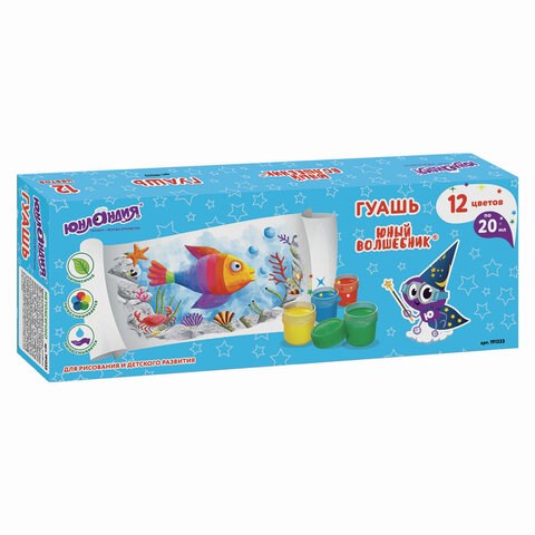 Гуашь ЮНЛАНДИЯ "ЮНЫЙ ВОЛШЕБНИК", 12 цветов по 20 мл, высшее качество, 191333