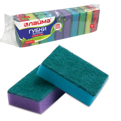 Губки для посуды 8х5,3х2,6 см, КОМПЛЕКТ 10 шт., STANDART, поролон с абразивным слоем, LAIMA К002, 601551