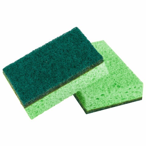 Губки для посуды 110х70х20 мм, ЦЕЛЛЮЛОЗНЫЕ + АБРАЗИВ, КОМПЛЕКТ 2 штуки, зеленые/зеленый абразив, LAIMA, 700258