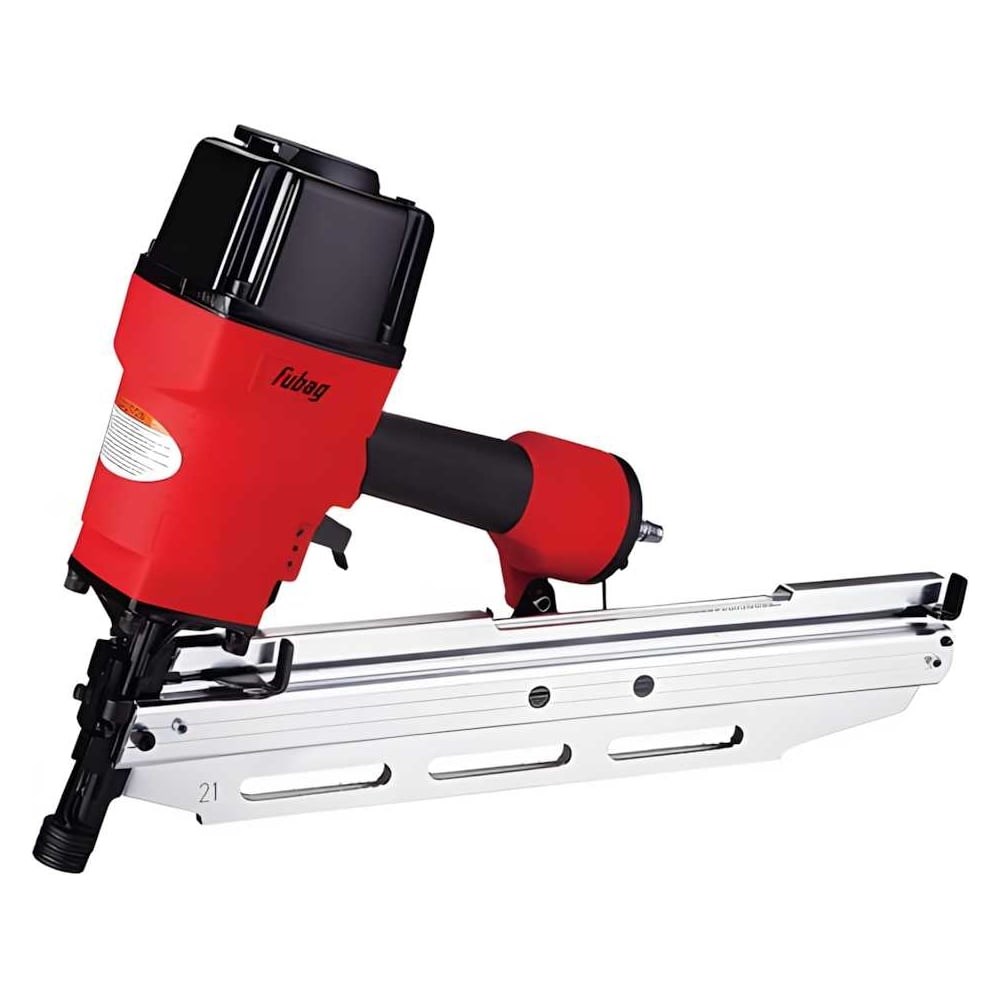 Гвоздезабивной пистолет FUBAG N90 100156 широко используется для стяжки полов, крепления листовых материалов, сборки каркасов деревянных домов и прочего. Магазин расположен под углом к обрабатываемой поверхности. Он вмещает 50 гвоздей.