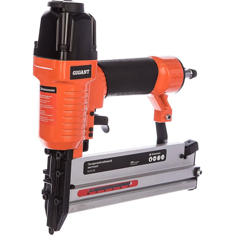 Гвоздескобозабивной пистолет Gigant NC15/50 пригодится при выполнении строительно-монтажных рабочих операций. Используется совместно с гвоздями длиной 15-50 мм и скобами размером 16-40 мм. Зона обхвата имеет специальное покрытие, благодаря чему обеспечивается надежное удержание инструмента. Принцип работы на сжатом воздухе предусматривает внушительный рабочий ресурс. Внимание! Количество гвоздей в магазине (100 штук) - это вместимость магазина, гвозди в комплект поставки не входят.