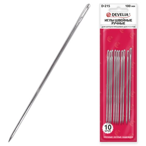 Иглы для шитья и прошивки документов D-215 ручные (цыганские), длина 100 мм, 10 штук, DEVELIA, 700396