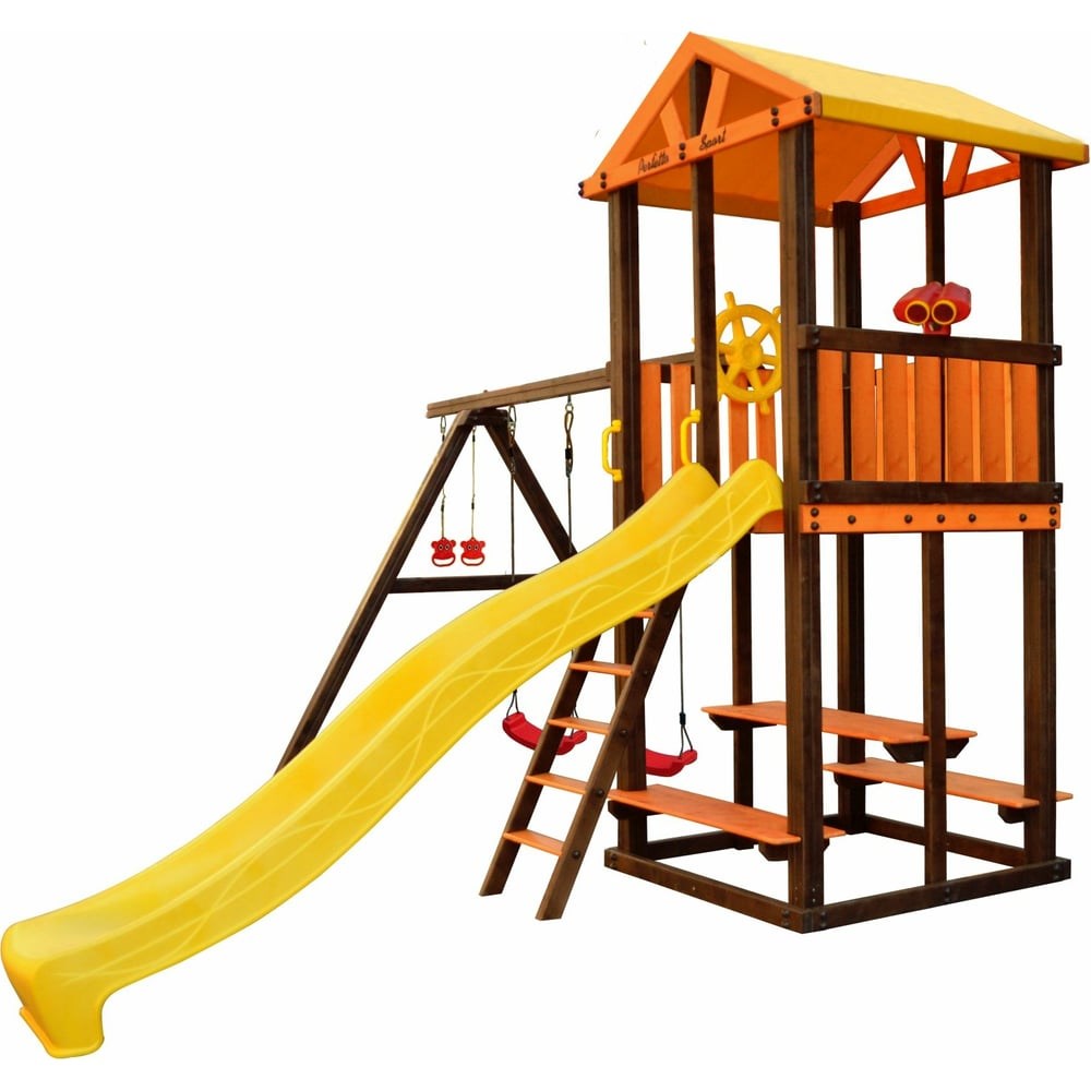 Игровой комплекс (ИК) Perfetto Sport «Bari-3» СГ000005001 изготовлен из отборного пиломатериала хвойных пород из северных регионов. За счет этого древесина имеет более плотные годичные кольца, что обеспечивает долговечность и устойчивость к внешней агрессивной среде, позволяя добиться высокого качества готовых изделий. Благодаря специальной конструкции, клееный брус имеет прекрасные прочностные характеристики, не дает усадки и не деформируется. Закругление кромок по четырём сторонам деталей снижает вероятность растрескивания детали, появления сколов, трещин и самое главное, повышает уровень травмобезопасности. Детали изготовлены по принципу конструктора - выпускаются полностью подготовленными к сборке, за счет этого установка не требует высокой квалификации сборщика, достаточно шуруповерта и инструкции. Для защиты древесины используется специализированная водная дисперсия акриловых смол последнего поколения, способная растягиваться после сушки на 200% без разрыва плёнки. Имеет повышенную морозостойкость до -50°С, что актуально для российского климата. Содержит специальные фунгицидные добавки (противогрибковая защита), разрешенные к применению в России и странах ЕС. Дополнительные характеристики: Высота - 3.23 м Скат горки - 3 м Высота горки - 1.5 м