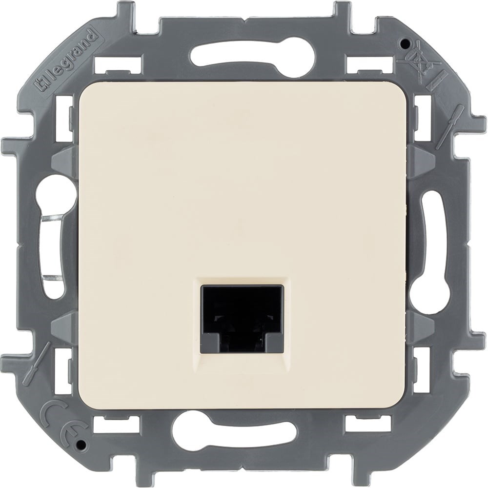 Информационная розетка RJ 45 Legrand - категория 6 - UTP - INSPIRIA - слоновая кость 673831 предназначена для быстрого подключения персональных компьютеров, принтеров, роутеров и другого оборудования к информационным сетям категории 6 со скоростью передачи данных 1 Гб/сек. Подходит для использования в сетях категории 5е. Возможно прямое подключение 1 устройства. Дополнительные технические характеристики: Присоединение информационного кабеля к розетке не требует специального инструмента, благодаря эргономичному поворотному коннектору. Коннектор оснащен цветовым кодом и пронумерованными контактами для быстрого и безошибочного монтажа. Распределение жил под углом 90 градусов обеспечивает наилучшее качество передачи данных. Расстояние 13 мм между витыми парами гарантирует защиту от пробоя. Лицевая панель изготовлена из качественного пластика ABS, устойчивого к загрязнению и воздействию УФ-излучения.