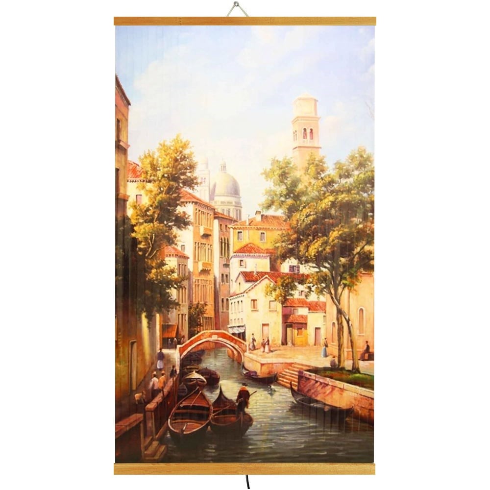 Инфракрасный гибкий настенный обогреватель для квартиры и дачи Домашний Очаг Венеция ИКОДО-ВН предназначен для дополнительного обогрева помещений в холодное время года. Он не сушит воздух и не сжигает кислород. Обогреватель-картина с рисунком не только подарит тепло и уют дому, но и украсит его. ИК волны аналогичны солнечным лучам и воспринимаются телом человека как приятное тепло, грея мягко и не обжигая. Прибор отлично подойдет для использования на даче, балконе, в квартире, особенно в подростковых комнатах в стиле лофт. Он идеален для помещений площадью до 15 кв.м. Пленочный обогреватель-картина закрепляется на стену при помощи дюбеля и шурупа (входят в комплект).