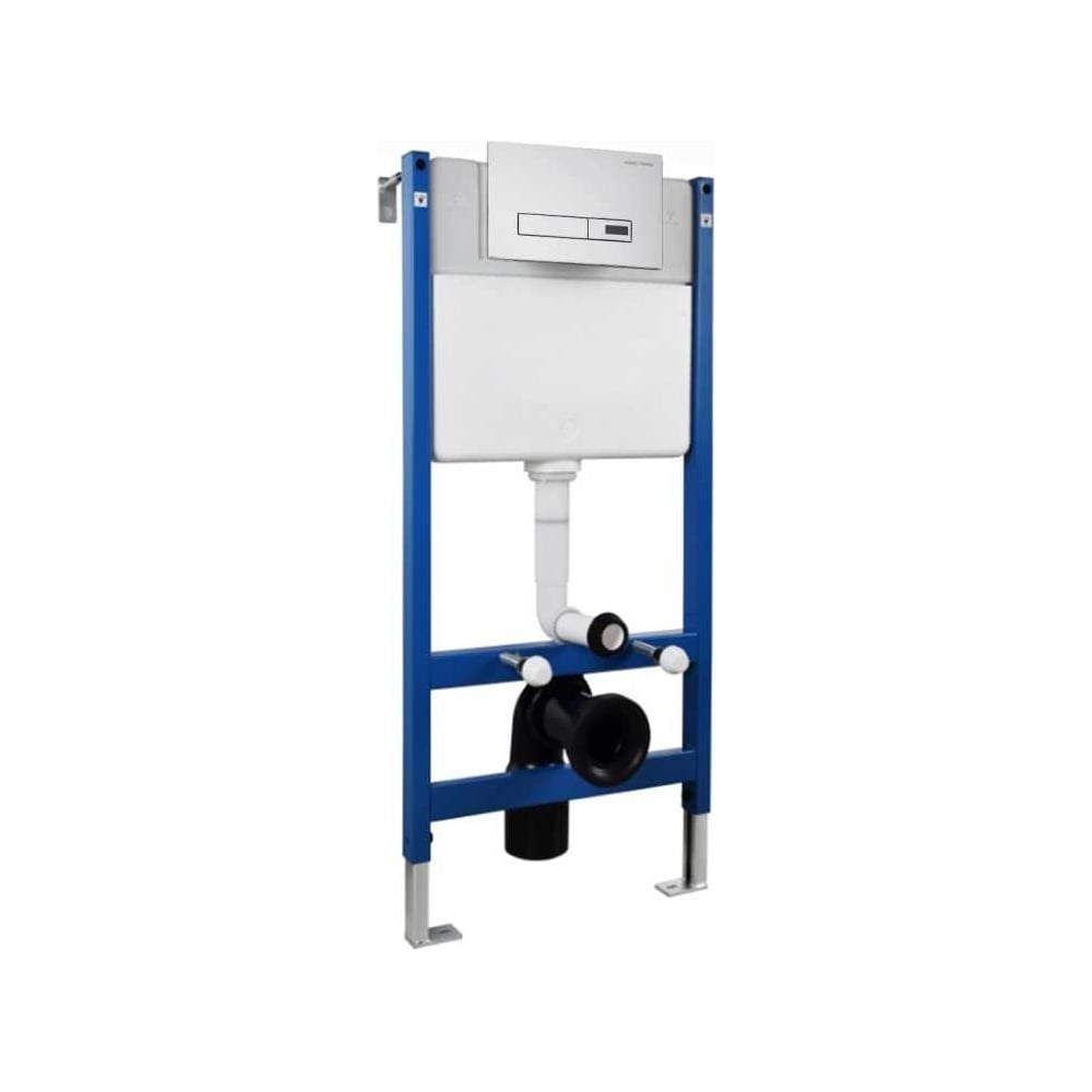 Применяется для установки подвесных унитазов. В составе предусмотрены Стальная рама с креплением к полу и стене Фитинг и манжета для подключения к трубам канализации 90 и 110 мм Трубки и шпильки для подключения унитаза к инсталляции Пластиковый бачок в пенопластовой изоляции с заливной и смывной арматурой Латунный клапан (вентиль) для подключения к трубам водоснабжения Заглушки на время ремонта для бачка, смывной трубки и канализационного фитинга Декоративная пластиковая панель с двумя кнопками смыва. В моделях с сенсорным управлением с одной кнопкой смыва Материалы и рабочие характеристики Материал рамы: сталь, порошковое окрашивание. Подключение к клапану (вентилю) водоснабжения: 1/2" наружная резьба. Обратите внимание подключение труб к клапану возможно только сверху бачка. Подключение к канализации: 90 и 110 мм. Вертикально, горизонтально, под углом. Рабочее давление: от 1 до 10 Бар. Полный смыв: 6 литров. Для всех моделей. Малый смыв: 3 литра. Не предусмотрен в сенсорных моделях. Ресурс работы: 150 тыс. циклов. Установленная безотказная работа: 60 тыс. циклов. Уровень шума: не более 19 дБ. Питание сенсорной панели (для сенсорных моделей): батарейки типа АА 4 шт "Пальчиковые", на 50 000 циклов. Статическая нагрузка: до 400 кг. Крепление унитаза к раме: 180 и 230 мм. Шпильки, гайки, заглушки в комплекте. Размер декоративной панели: 250*165*15 мм.