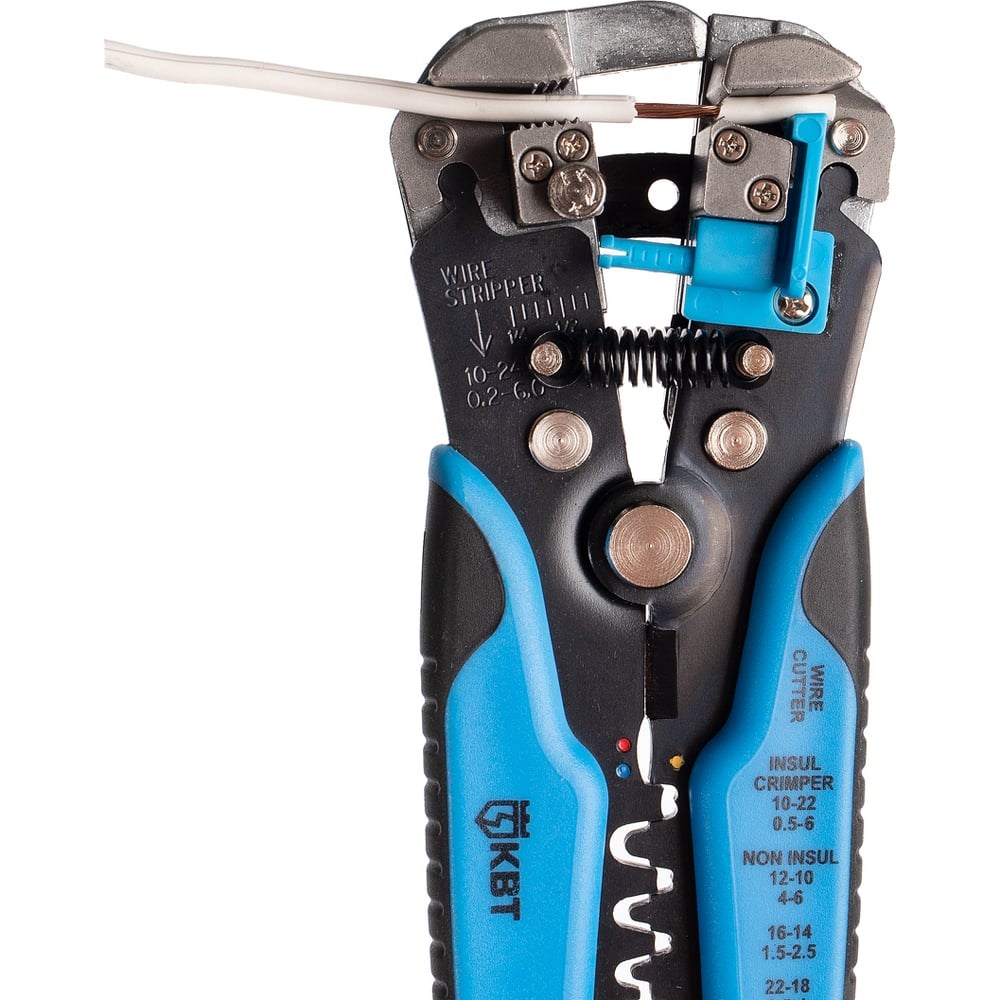 Инструмент для снятия изоляции КВТ WS-04A 61668 - автоматический стриппер для опрессовки наконечников 0.5-6 кв.мм, снятия изоляции и резки проводов сечением 0.05-6 кв.мм. Самостоятельно настраивается под диаметр кабеля. Имеется винт микронастройки для проводов в диапазоне 0.05-0.2 кв.мм. Благодаря возвратной пружине работа с инструментом не требует больших усилий. Типы опрессуемых наконечников: изолированные, неизолированные, автоклеммы под двойной обжим.