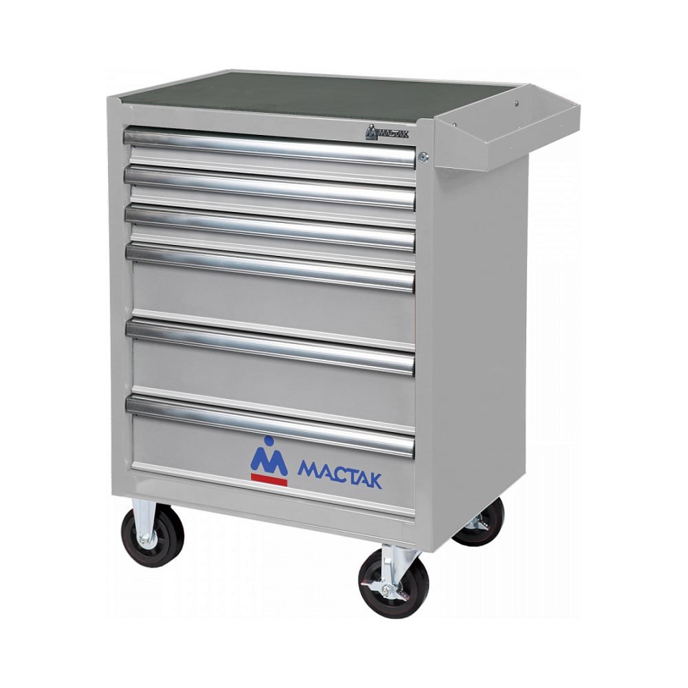 Инструментальная тележка МАСТАК серии ОПТИМА, 6 полок, серая 521-06581MG выполнена из листового металла на прочном и жестком каркасе. Конструкция выдерживает значительную нагрузку. Ее не перекашивает при движении по неровным поверхностям. Удобная рукоять упрощает перемещение. Она монтируется по ширине тележки и позволяет легко маневрировать. Поворотные колеса дополнительно оснащены стопором, который облегчает стабилизацию тележки. Каждый ящик оборудован удобной рукояткой для извлечения. Ящики имеют различную высоту. Это позволяет хранить инструмент более систематизировано. Есть удобные рукоятки и надежные ролики.