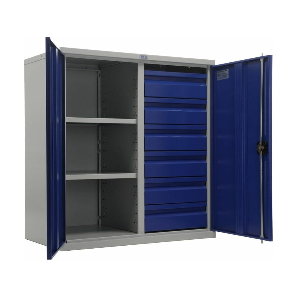 Инструментальный шкаф ПРАКТИК ТС 1095-100206 К30599530046 позволяет расположить составляющие (полки и ящики) в зависимости от ваших нужд. Ригели из оцинкованной стали гарантируют надежное запирание шкафа. Имеет бесшумные двери для комфортного использования. Дополнительные характеристики: Толщина стального профиля корпуса и двери: 0.8 мм; Максимальная нагрузка на шкаф: 200 кг; Максимальная нагрузка на полку: 80 кг; Максимальная нагрузка на ящик: 30 кг; Шаг регулирования высоты полки: 50 мм; Материал втулок: пластик; Тип покрытия: порошковое.