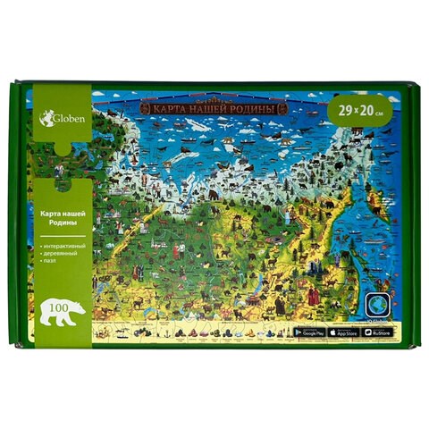 Интерактивная деревянная карта-пазл GLOBEN "Карта нашей Родины", 29х20 см, 100 элементов, PAG5202