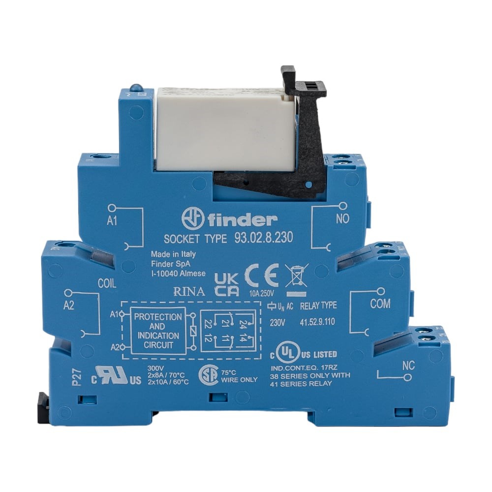 Дополнительные характеристики интерфейсного модуля реле Finder 2 перекидных контакта 8А, 230В AC, винтовые зажимы, 385282300060: Контактная группа - 2 CO (SPDT). Винтовые клеммы. Встроенная схема индикации и защиты катушки. Мгновенное извлечение реле с помощью пластикового зажима. Сертифицировано UL (некоторые комбинации реле / розетка). Установка на 35-мм рейку (EN 60715). Реле, которое вставлено в розетку, на 110В DC Фото товара является условным, актуальные данные указаны в технических характеристиках.