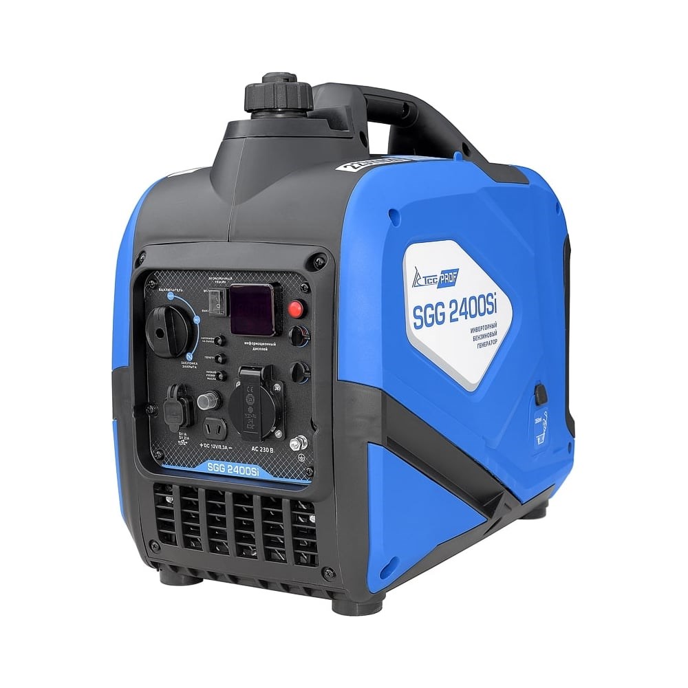 Инверторный бензогенератор ТСС SGG 2400Si 060028 в шумопоглощающем кожухе, предназначен для подключения к нему потребителей тока общей максимальной мощностью до 2,4 кВт. Переносной компактный инверторный генератор предназначен для питания электроприборов, на загородном участке, в походе, на рыбалке. Благодаря использованию этой модели инверторного преобразователя, на выходе получается стабильный ток, без каких-либо скачков, генератор способен регулировать работу двигателя в зависимости от нагрузки: к примеру, если нагрузка составляет половину от выходной мощности, то и мощность двигателя снижается вдвое; это дает значительную экономию топлива. Инверторные модели получаются более легкими и компактными, чем традиционные генераторы. Благодаря двигателю, специально разработанному под инверторный генератор и особенной конструкции корпуса, удалось значительно понизить уровень шума. Инверторный генератор считается оптимальным выбором для нагрузки, чувствительной к качеству тока — такой, как аудиотехника или телевизор. Система перевода двигателя в экономичный режим Индикаторы на панели показывают параметры напряжения, превышение мощности генератора, низкий уровень масла. Медная обмотка альтернатора Защита от короткого замыкания, перегрузки и низкого уровня масла Шумозащитный кожух Антивибрационные резиновые ножки Экономичный расход топлива (при 75% мощности 1 л/ч) Стабильный ток для точных приборов