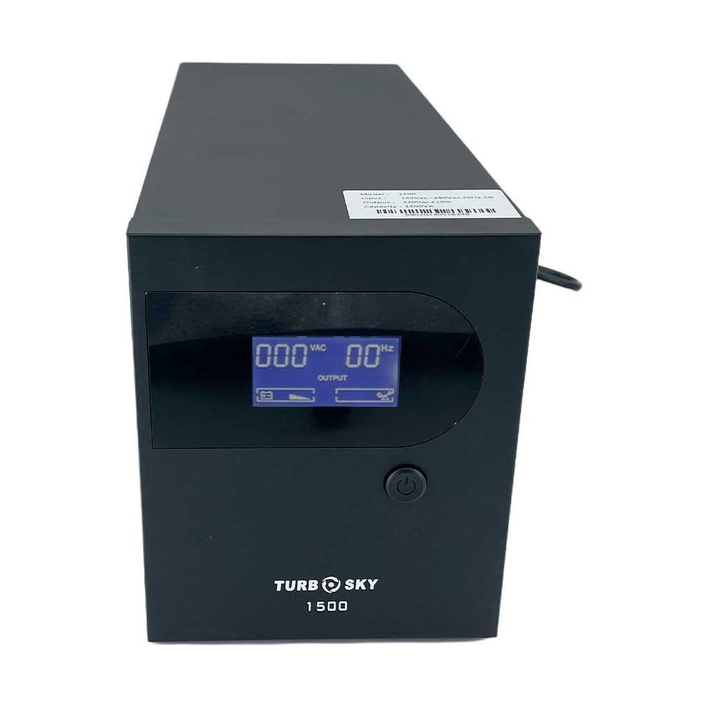 Источник бесперебойного питания Turbosky 1500VA 3353_a работает в условиях влажности не более 90%,итемпературыот 0 до 40°C. Исходящий шум менее 40 дБ. Выходное напряжение в форме модифицированной синусоиды. Широкий диапазон регулирования выходного напряжения. Широкий применимый диапазон напряжений. В пределах диапазона входного напряжения модели он может обеспечить нормальное рабочее напряжение для электрооборудования. Когда входное напряжение превышает этот диапазон, устройство автоматически переключается в режим инвертора для подачи питания, чтобы гарантировать, что компьютер и другое оборудование не будут повреждены. Защита от перегрузки. В состоянии инвертора, когда происходит перегрузка, выходное напряжение соответственно понижается, и когда нагрузка возвращается к уровню ниже номинальной мощности, выходное напряжение также повышается до указанного значения, чтобы избежать мгновенной перегрузки, вызванной скачком тока, вызванным включением других оборудование во время работы компьютера. При сильной перегрузке он автоматически отключится. Защита от короткого замыкания. При коротком замыкании в связи с неосторожной эксплуатацией или при коротком замыкании компьютера (например, при пробое силовой трубки импульсного источника питания) и возникновении короткого замыкания ИБП автоматически выключится. Функция автоматического включения питания. ИБП разряжается для автоматического отключения в режиме инвертора. ИБП автоматически включается при подключении к источнику питания.