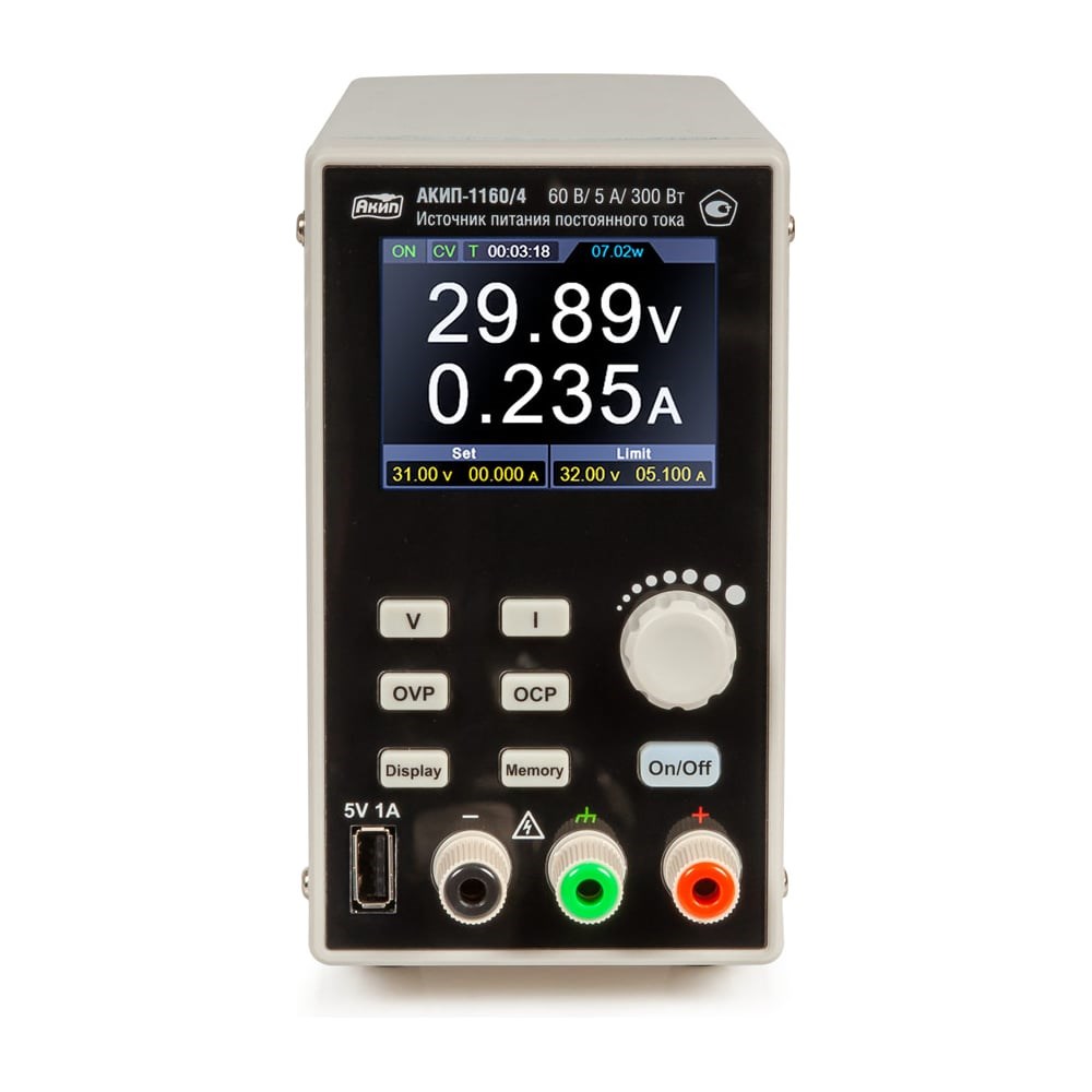 Дополнительные характеристики: Выходная мощность 200 Вт Число выходов: 1 регулируемый канал + 1 фиксированный (5 В/1 А) Макс. разрешение (установка и измерение): 10 мВ/1 мА Режимы стабилизации тока и напряжения (CC/CV) Режимы защиты: от перегрузки по току (OCP), от перенапряжения (OVP) Выход USB на передней панели: 5 В/ 1 А для питания портативных устройств Большой цветной ЖК-дисплей (диаг. 7 см): значение тока и напряжения с отображением выходной мощности (U/I/P), построение графика Uвых Внутренняя память (М1-М4): 4 профиля настройки (U/I/OVP/OCP) Программирование выходной формы: 10 точек Uвых (U/I/T) Режим последовательного или параллельного соединения источников Автовключение Uвых (функция отложенного на 5 с включения выхода ИП)