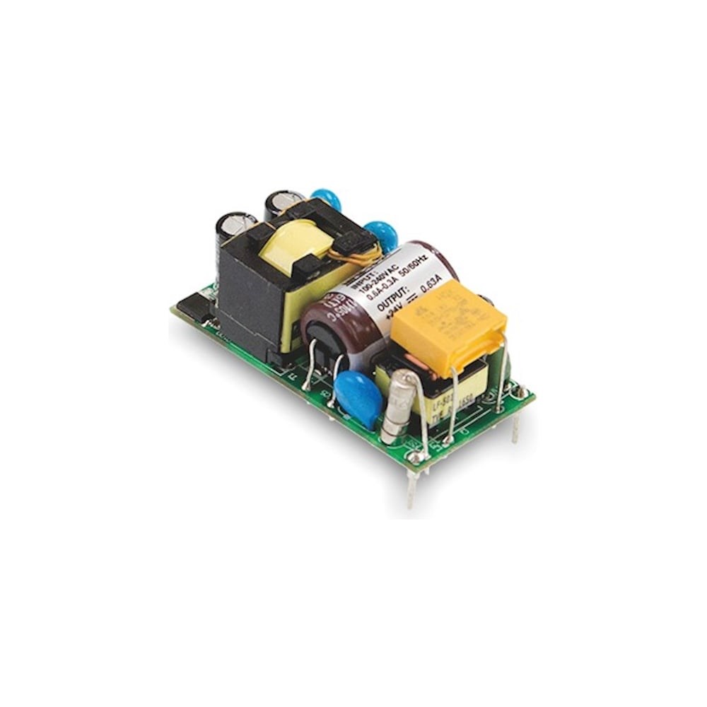 AC-DC источник питания, 21.6Вт, вход 80...264В AC 47...440 Гц, выход 12В/1.8А, изоляция 4000В AC, на плате 49 х23.8 х23 мм, диапазон рабочих температур -35...+85°C