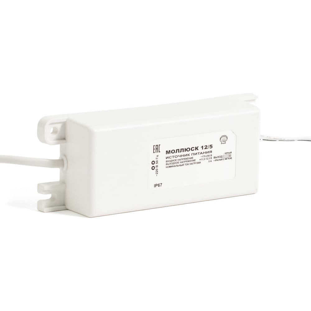 Источник вторичного питания МОЛЛЮСК-12/5 предназначен для электропитания радиоэлектронной аппаратуры номинальным напряжением 12 В. Основная область применения: системы видеонаблюдения, в которых не предусмотрена возможность работы при отключении внешнего электропитания. Изделие представляет собой источник питания постоянного тока без возможности организации резерва и подключения АКБ. Прибор работает от переменного входного напряжения в диапазоне от 170 до 250 Вольт. Блок питания выполнен в компактном пластиковом корпусе с защитой по классу IP67. Благодаря этому он подходит для разнообразных вариантов скрытой установки, например, в кабельные каналы, в электротехнические распаечные коробки и даже внутрь кожуха видеокамеры. Применение высококачественных радиоэлектронных компонентов, а также продуманные схемотехнические решения обеспечивают стабильное напряжение на выходе источника питания и гарантируют длительную беспроблемную эксплуатацию подключенного оборудования. Также для защиты нагрузки в источнике питания предусмотрены все необходимые защиты: от перегрузки, от короткого замыкания.