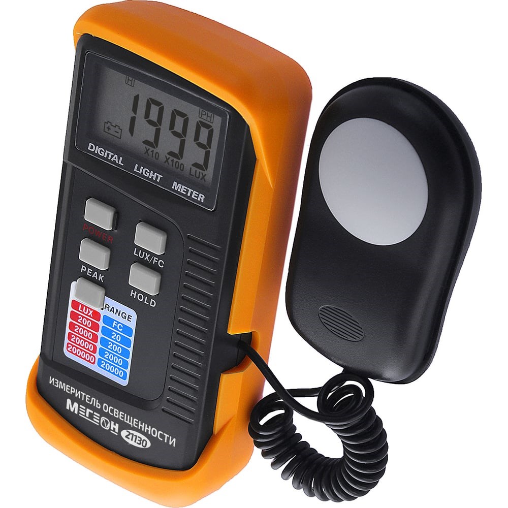 МЕГЕОН 21130 - цифровой измеритель освещенности представляет собой прецизионный измерительный прибор с большим диапазоном измерений и высокой точностью. Корпус люксметра изготовлен из прочного пластика, но для предотвращения случайного повреждения в комплекте имеется защитный холдер. Кремниевый фотодатчик со встроенным светофильтром соответствует требованиям Международной комиссии по освещению. Для удобства эксплуатации датчик вынесен отдельно от основного модуля и связан с ним спирально- пружинным проводником длиной 50 см. Результаты выводятся на жк-дисплей размером 3,5'. В приборе имеется функция фиксации полученных значений. К преимуществам можно отнести скорость отклика, автоматическое выставление на ноль и возможность калибровки. Люксметр станет идеальным помощником работников охраны труда при аттестации рабочих мест и главных инженеров.