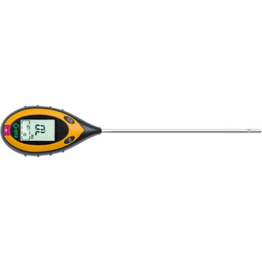 Измеритель параметров почвы 4в1 FLO 89000 позволяет измерить четыре значения: влажность почвы pH почвы температуру почвы интенсивность освещения Прибор оснащен зондом длиной 20 см и четким ЖК-дисплеем для удобного считывания данных. Имеет функцию автоматического отключения, которая помогает экономить заряд батареи. Внимание! Если зонд не помещён в землю, будет отображаться температура окружающей среды.