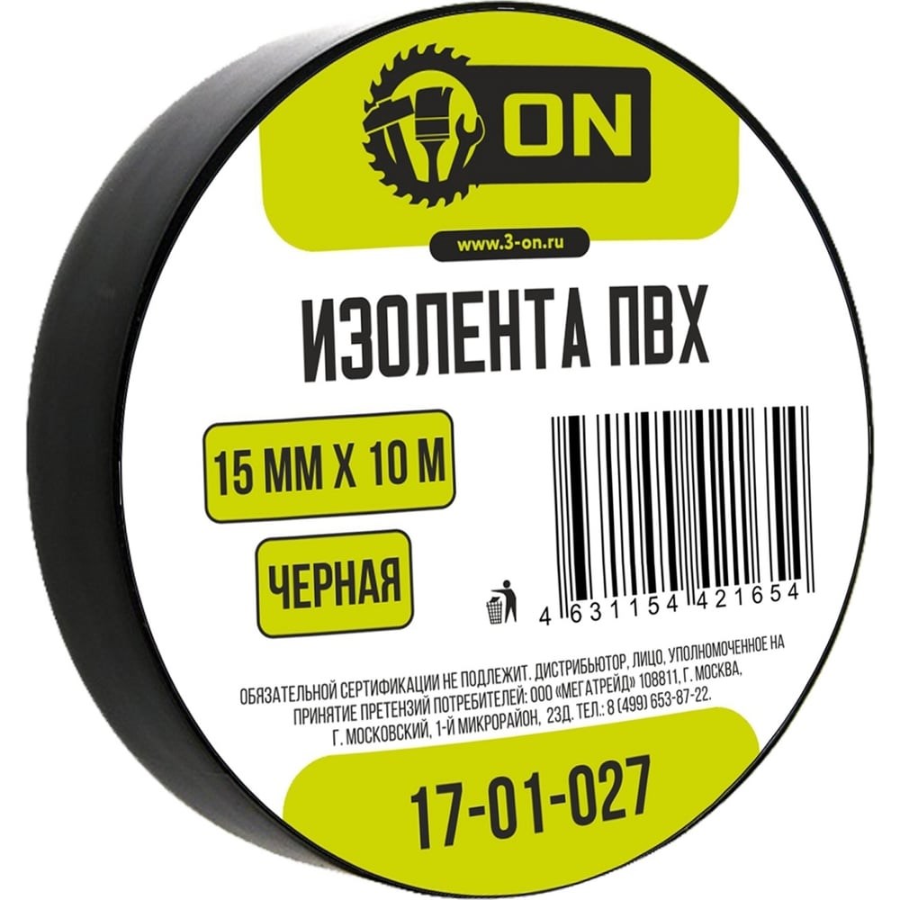 Изолента On ПВХ 15мм х 10м черная 17-01-027