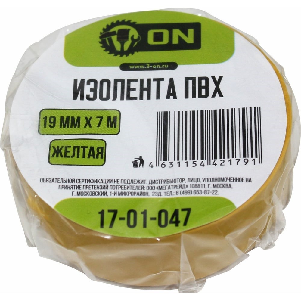Изолента ПВХ On 19мм х 7м желтая 17-01-047