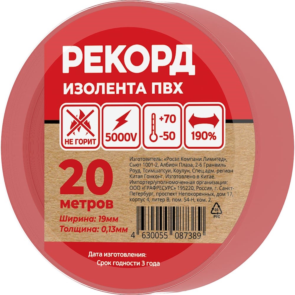 Изолента РЕКОРД обладает характеристиками, достаточными для проведения большинства электромонтажных и бытовых работ. Мы контролируем качество производства изоленты РЕКОРД и гарантируем полное соответствие фактических характеристик изоленты заявленным.