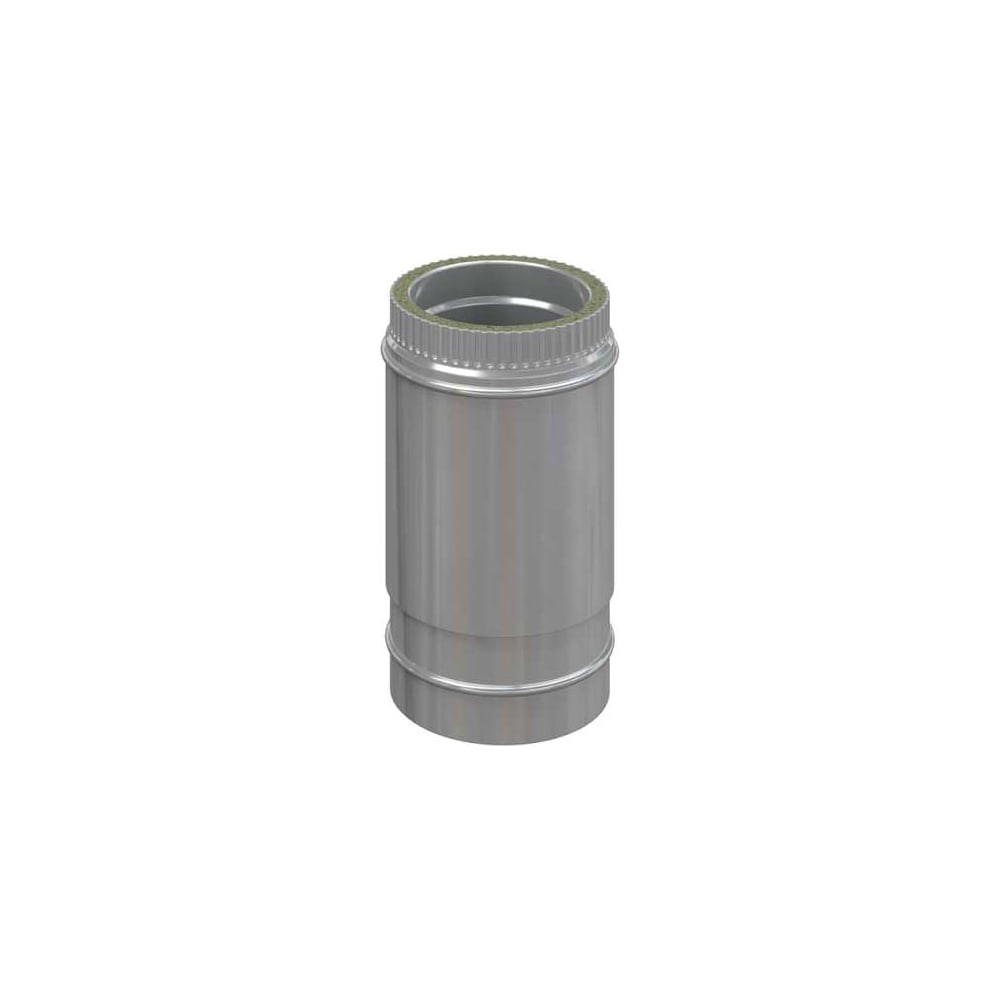 Труба телескопическая изолированная двухконтурная из нержавеющей стали, прямая, типа сэндвич. Изоляция - минеральная вата. Состоит из двух цилиндров двухконтурных труб, состыкованных по телескопическому принципу. Предназначена для стыковки и корректировки прямых участков дымохода, для объединения двух участков труб с разным диаметром, подгонке двух участков дымохода по длине.
