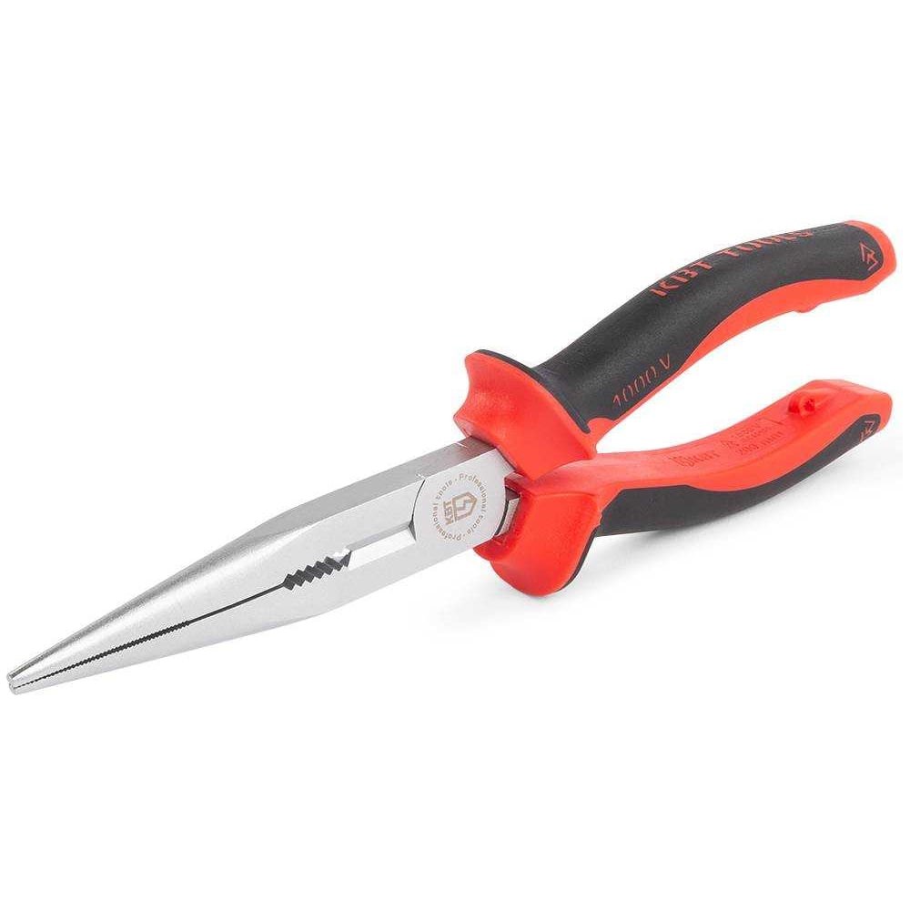 Изолированные длинногубцы 200 мм КВТ 60472 - инструмент для электромонтажных работ. Захватные губки имеют зубцы для лучшего удержания деталей. Никелированная головка защищена от коррозии. Диэлектрическое покрытие рукояток защищает пользователя от поражения током. Дополнительно закаленные режущие кромки. Для работ в труднодоступных местах. Удлиненные губки.
