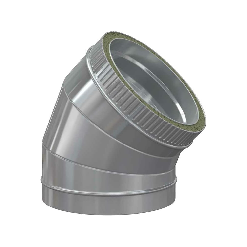 Отвод 45° двухконтурный РОССТИН, теплоизолированный из нержавеющей стали AISI 304 /AISI 430 предназначен для изменения конфигурации дымохода в плоскости. Изоляция.