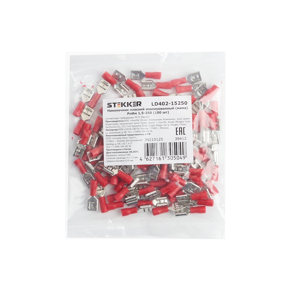 Изолированный плоский наконечник мама STEKKER РпИм 1,5-250, LD402-15250 ОПТ упаковка 100шт 39412 служит для формирования изолированных разъемных соединений. Даёт возможность оперативного размыкания/ замыкания цепи, а также переключения различных контуров электрических схем в новые конфигурации.