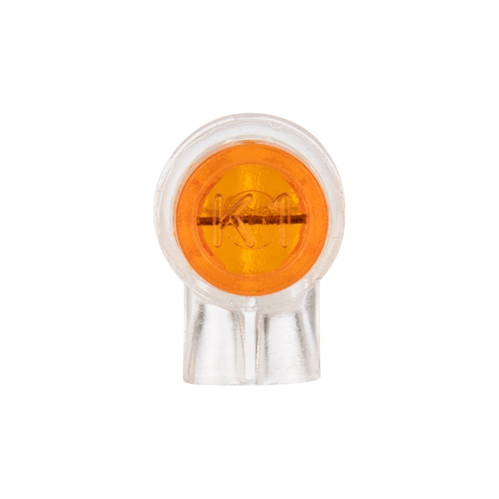 Изолированный соединитель для жил применяется для соединения различных проводов с диаметром жилы от 0,4 до 0,7 мм между собой. Производить предварительную зачистку изоляции не требуется, что экономит время и позволяет быстро выполнить работу. Устройство оснащено кнопкой, внутри которой располагается контактная пластина. При нажатии на кнопку пластина прорезает провода, тем самым соединяя их. Внутри пластикового корпуса находится гидрофобный (влагоотталкивающий) гель, который покрывает сращиваемые контакты после обжима и защищает их на протяжении всего срока службы от влаги и образования коррозии. Для обжима необходимо использовать специальный инструмент или плоскогубцы, например 12-4612-4.
