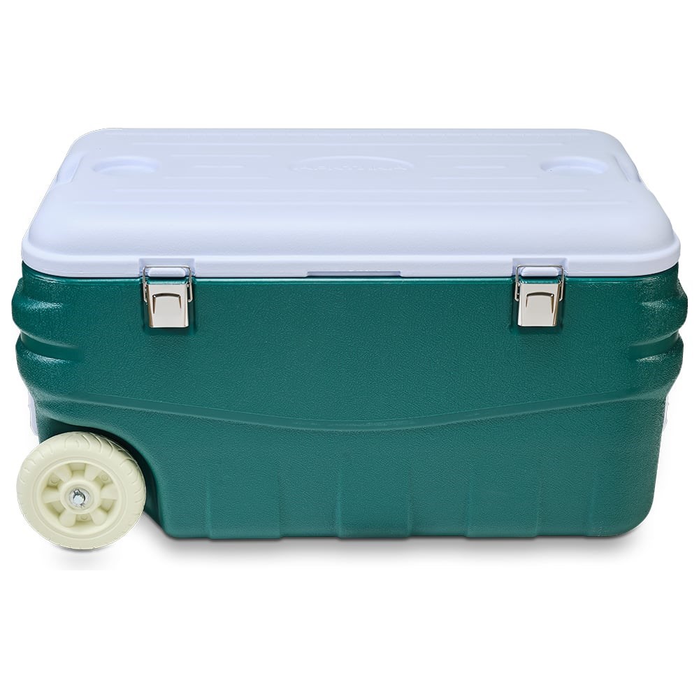 Изотермический контейнер термобокс Арктика 80л, аквамарин 2000-80 аквамарин сохраняет низкую температуру пищевых продуктов до 141 часов. Данная модель оснащена колесами для удобства транспортировки. Металлические петли удерживают крышку плотно прижатой к основанию. Внешняя сторона изготовлена их ударопрочного пластика для увеличения срока службы, внутренняя - из пищевого. Прослойка выполнена из вспененного полиуретана и имеет толщину 1см.
