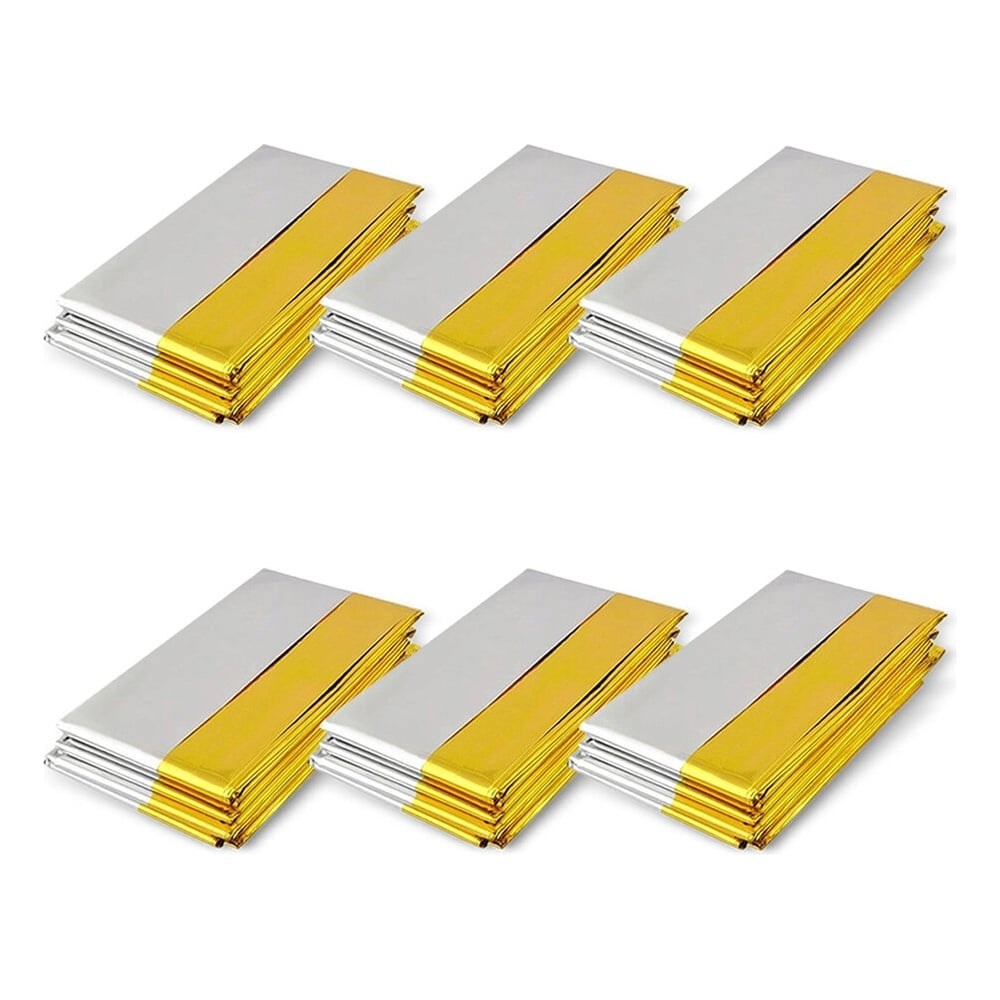 Термоодеяло изотермическое КОМПЛЕКТ 6 шт. от DASWERK — это идеальное покрывало для путешествий, туризма, рыбалки и охоты. Изготовленное из прочной полиэфирной пленки с металлическим напылением, оно обеспечивает надежную защиту от дождя и солнца, а также сохранение тепла. Серебряная сторона помогает удерживать тепло до суток, в то время как золото защищает от перегрева, что делает термоодеяло универсальным решением для любых условий. Компактный размер 160х210 см позволяет удобно разместить термоодеяло в чехле, что делает его незаменимым аксессуаром в походной аптечке и тактическом наборе для выживания. Полиэфирная пленка легко выдерживает вес до 200 кг, что позволяет использовать его в качестве импровизированных носилок. Благодаря яркой отражающей поверхности, термоодеяло облегчает визуальный и радиолокационный поиск, что особенно важно в экстренных ситуациях. Не упустите возможность сделать ваше путешествие безопаснее и комфортнее с термоодеялом DASWERK! • Тип товара: термоодеяло. • Назначение: для туризма. • Размер в разложенном виде: 160х210 см. • Размер в сложенном виде: 13х7 см. • Толщина: 12 мкр. • Количество в комплекте: 6 шт. • Материал: полиэфирная пленка. • Вес нетто: 360 г. • Цвет: серебристый/золотой. • Артикул производителя: 631158.