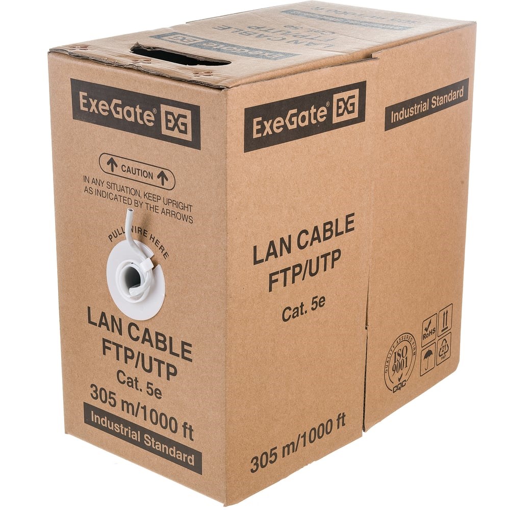Кабель UTP ExeGate 4 пары, категория 5e, CCA, 24AWG, бухта 305м, серый, PVC 138965