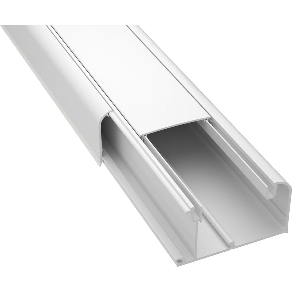 Кабель-канал 90х50 с разделителем (2 м) 09500DKC 09500 выполнен из самозатухающего материала - ПВХ. Кабель-канал значительно упрощает монтаж проводки как в жилых, так и в офисных помещениях. Кроме того, корпус из поливинилхлорида обеспечивает коммуникациям надежную защиту от повреждений различных типов. Основание кабель-канала монтируется к стене крепежом.