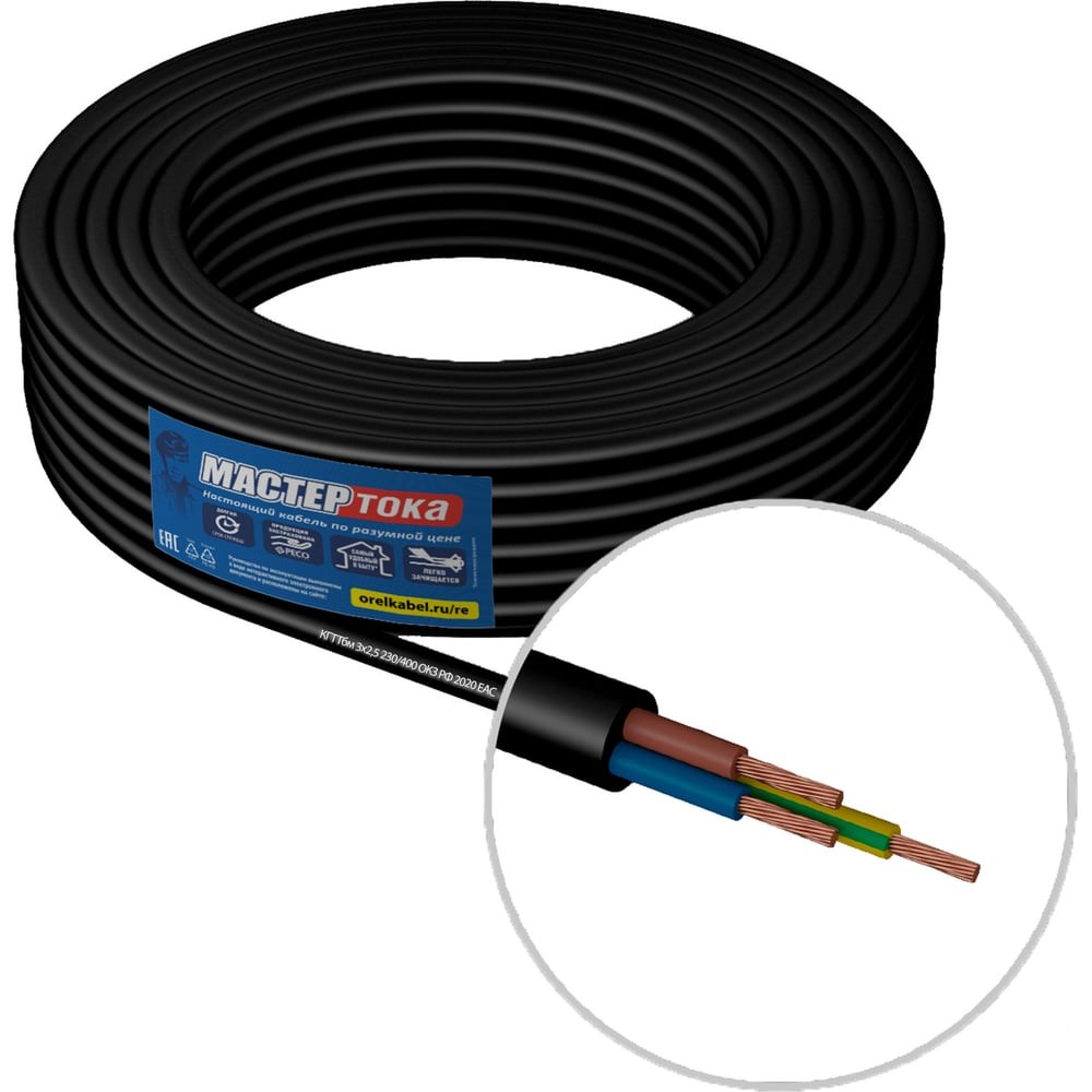 Кабель Мастер Тока КГТТбм 3х2.5 черный 100м МТ0437