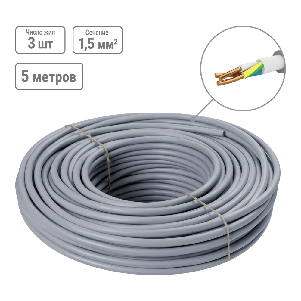 Кабель TDM ELECTRIC NYM-J 3x1,5-0,66 5 м SQ0121-0003