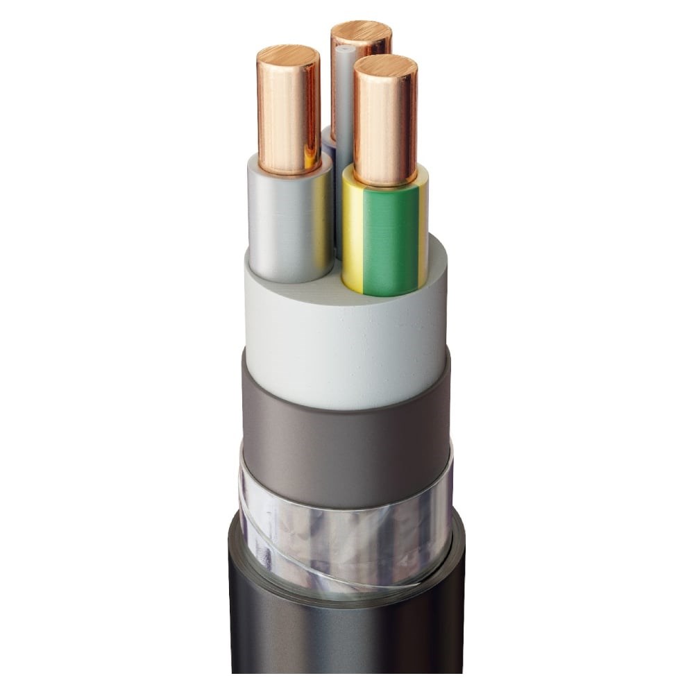 Силовой кабель для стационарной прокладки с медными жилами, не распространяющий горение при групповой прокладке, с низким дымо- и газовыделением, с изоляцией из поливинилхлоридного пластиката с броней из двух стальных оцинкованных лент, наложенных с перекрытием и оболочкой из поливинилхлоридного пластиката пониженной пожарной опасности, на номинальное напряжение 0,66 кВ.