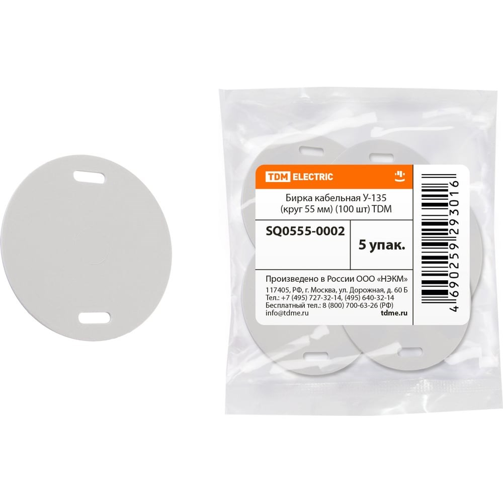 Кабельная бирка TDM ELECTRIC У-135 круг, 55 мм, 100 штук SQ0555-0002