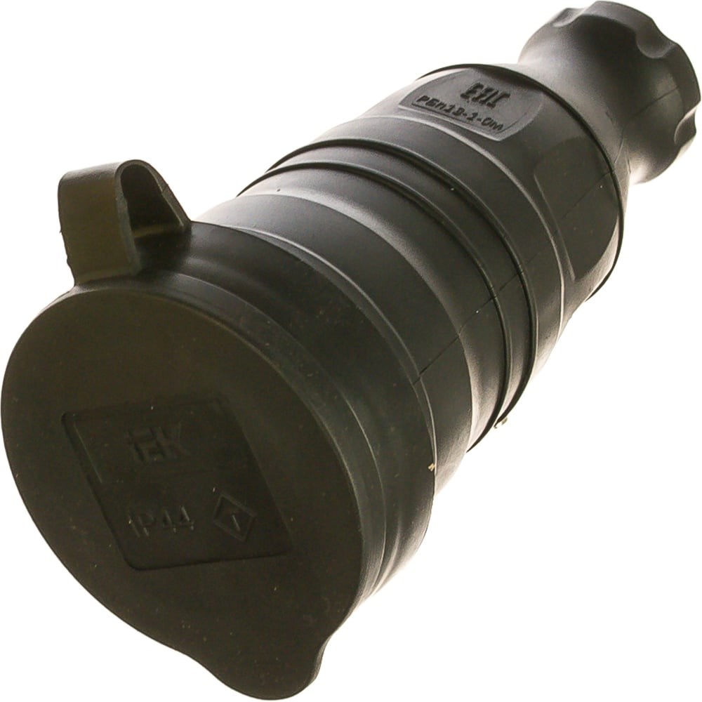 Кабельная розетка IEK, ОМЕГА, с заземлением, с крышкой, 1-м, IP44, РБп13-1-0м, ИЭК, черный PKR21-016-2-K02