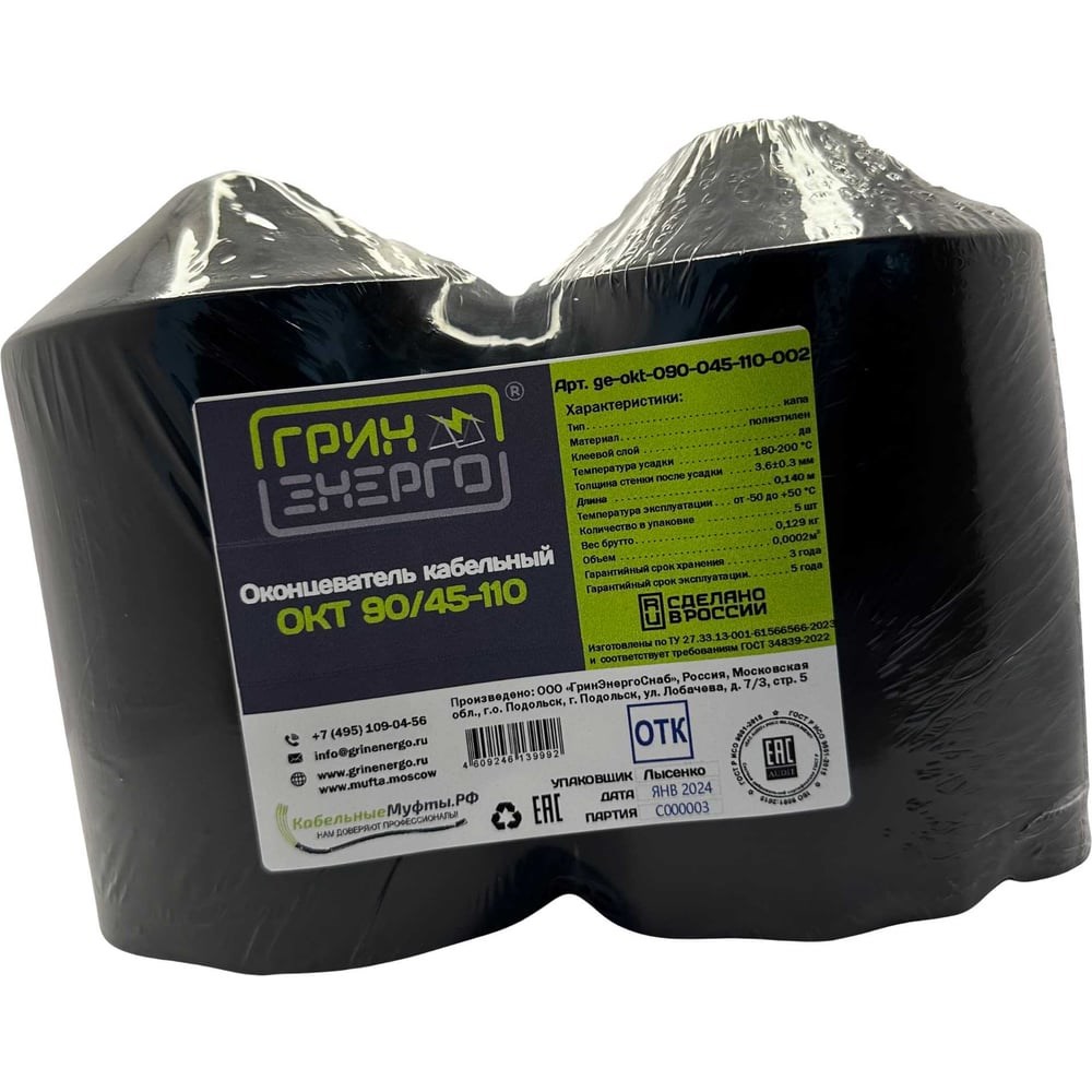 Термоусаживаемый оконцеватель (капа) ОКТ 90/45-110 ГринЭнерго предназначена для герметизации и защиты кабелей во время хранения, транспортировки и прокладки.