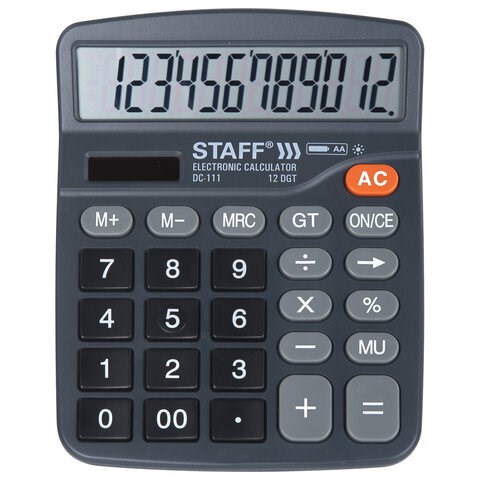 Калькулятор настольный STAFF PLUS DC-111 (180x145 мм), 12 разрядов, двойное питание, +БАТАРЕЙКА АА, 250427