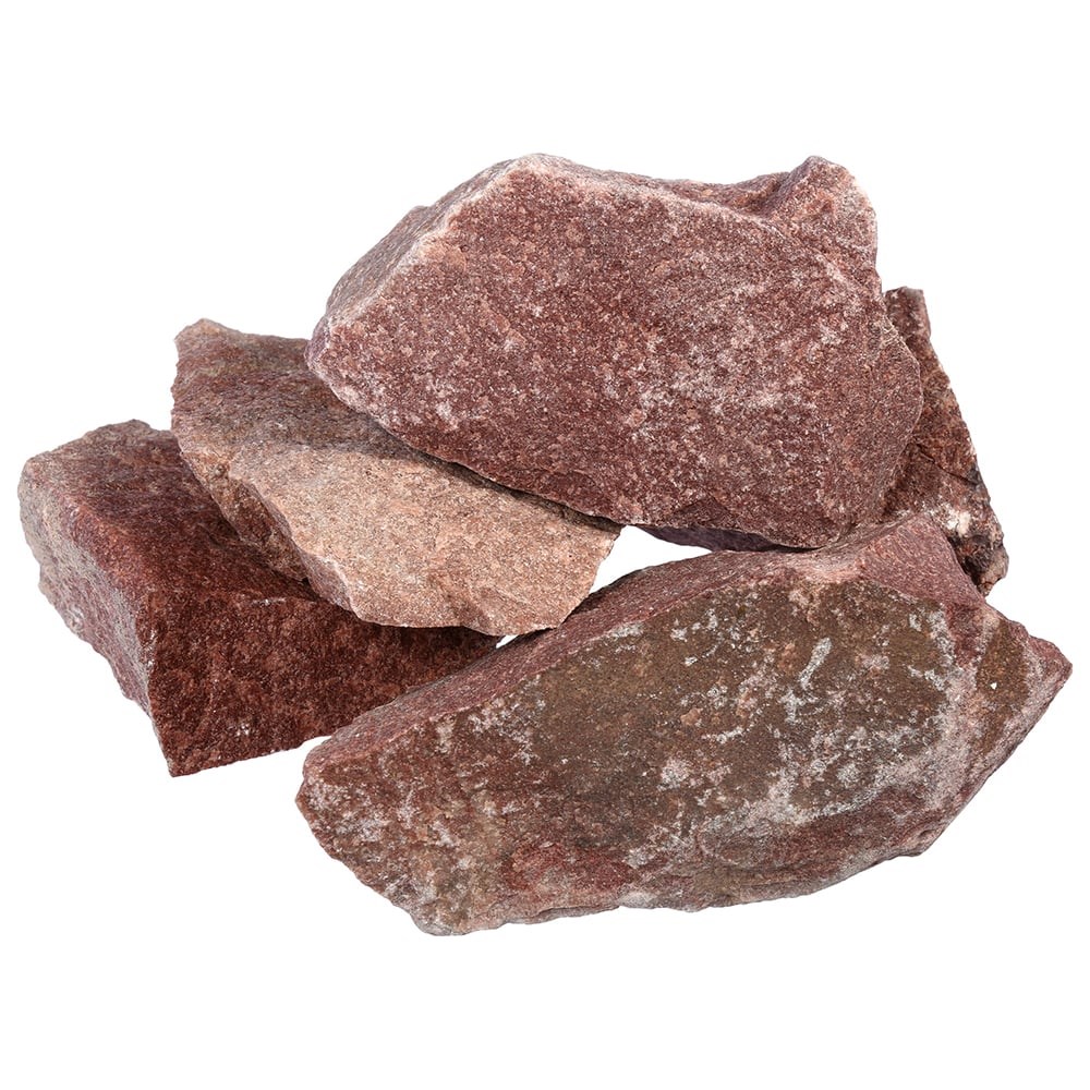 Камень Банные Штучки кварцит малиновый 03715 предназначен для использования в банях и саунах.Самое главное требование для камня- большая теплоемкость. Камень в печи должен аккумулировать тепло от топки печи и быстро отдавать накопленное тепло в помещение парной. При этом камень для банной печи должен выдерживать высокие температуры и не растрескиваться от перепадов температур при поливе водой. Данный камень средней фракции (70-140 мм). Камни могут отличаться друг от друга по цветовой гамме, также допустимо наличие вкраплений. На фото представлены мытые камни. Камень не предназначен для использования в декоративных целях и не является отделочным материалом. Рекомендации по уходу: перед закладкой в печь необходимо промыть камни.