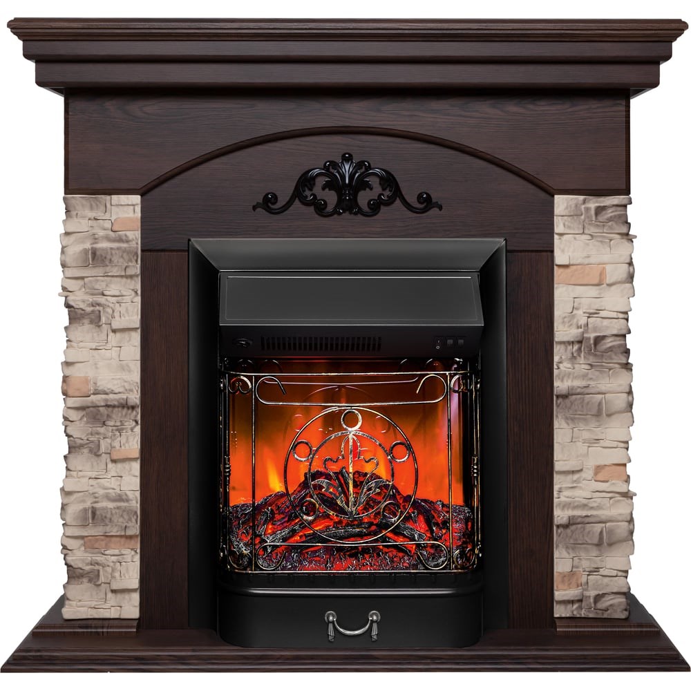 Каминокомплект Rockwood std nt-f316 + Majestic lux bl - стильный и технологичный камин, который значительно влияет на внешний вид того или иного помещения. Глубина и текстура цвета «античный дуб» отлично сочетаются со скалистым камнем на стенках, придавая камину солидности и строгой элегантности. Особенности обрамления: "кантри-стиль". Благодаря задней зеркальной стенке проекция пламени смотрится более выразительно и эффектно. Изюминкой очага Majestic является ажурная кованая решетка. Она придает ему вид изысканной старины и делает камин центром любого интерьера. Очаг выполнен в стиле классической дровяной топки. Он подходит как для самостоятельного встраивания в стенную нишу так и для установки в каминный портал. Муляж дров выполнен в виде точной копии тлеющих углей и небольших поленьев. Благодаря задней зеркальной стенке проекция пламени смотрится более выразительно и эффектно.Очаг имеет 2 уровня регулировки обогрева. Мощность обогрева: 0,75/1,5 кВтЗащита от перегрева Регулировка яркости пламени Звуковой эффектГабариты очага: 610х503х245 мм Встраиваемые: 555х405х140 мм Установка в портал: снаружи Муляж: дрова Тип ламп: светодиодные лампы Внутренняя стенка: зеркальная Корпус: черный Особенности: без внешнего стекла, декоративная решетка