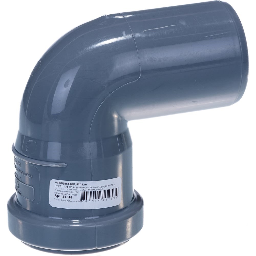 Канализационный отвод RTP 50 мм, 87 градусов, серый 36658