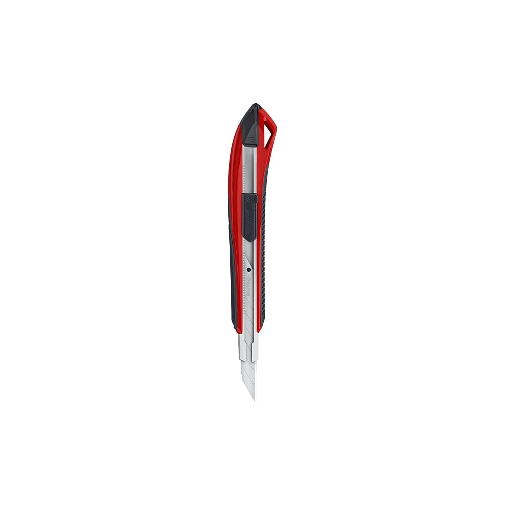 Канцелярский нож выполнен из высококачественного ABS пластика с применением технологии двойного литья (прорезиненные вставки). Имеет металлические направляющие. Модель имеет автоматическую фиксацию лезвия AUTO-LOCK и дополнительно оснащена замком блокировки. Комплектуется износостойким лезвием из стали SK5 с углом 30°. Нож поставляется в индивидуальной упаковке - блистер. На оборотной стороне блистера есть перфорация для более удобного извлечения инструмента из упаковки.