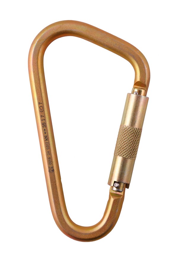 Карабин большого размера с косым раскрытием применяется в промышленном альпинизме, при строительно-монтажных работах.