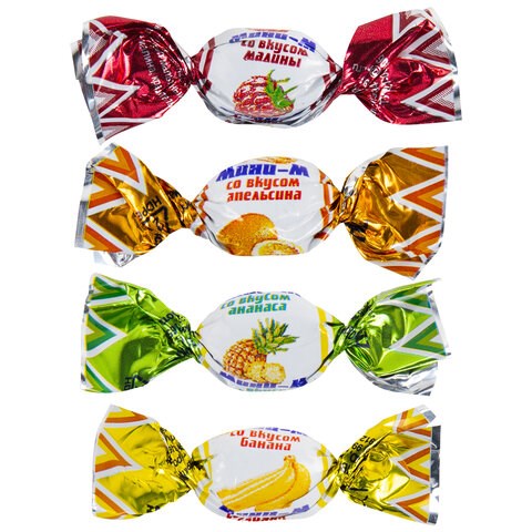 Карамель леденцовая МИНИ-М Тропик, ассорти (апельсин, банан, малина, ананас), 1 кг