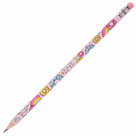 Карандаш чернографитный ЮНЛАНДИЯ "СЛАДКИЕ ИСТОРИИ", 1 шт., HB, с ластиком, корпус с печатью, 181750