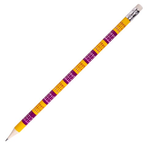 Круглый корпус карандаша покрыт печатью с таблицей умножения и оснащен ластиком. Карандаш выполнен из дерева высокого качества. Грифель диаметром 2,2 мм имеет твердость HB и отличается прочностью. Карандаш заточен и поставляется в пластиковой тубе с крышкой.