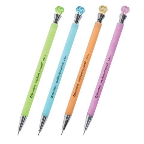 Карандаш механический 0,5 мм, BRAUBERG "Diamond", корпус ассорти, хромированные детали, 181416